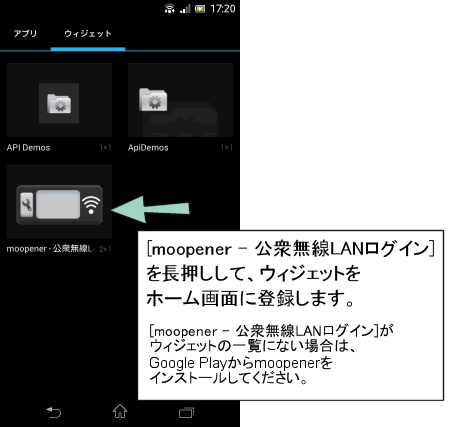 moopenerはホーム画面にウィジェットを登録してご利用ください。