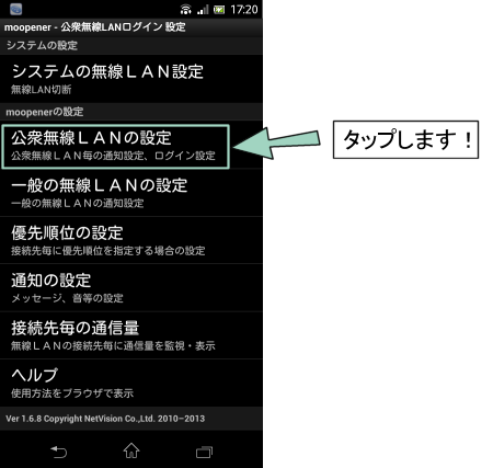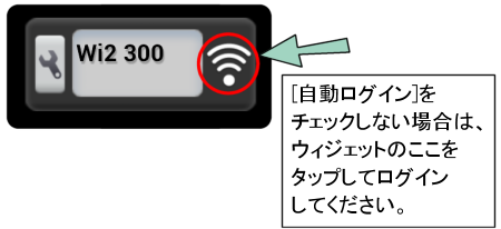 ログインする時は、ウィジェットの無線のマークをタップしてログインします。